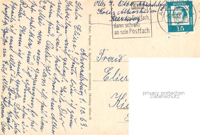 73669968 alte Postkarte Ahrensburg Schloss Altersheim Kirche mit Gottesbuden postalisch gelaufen Erhaltung siehe scans [WerneD78] KatCode: 11110001062001