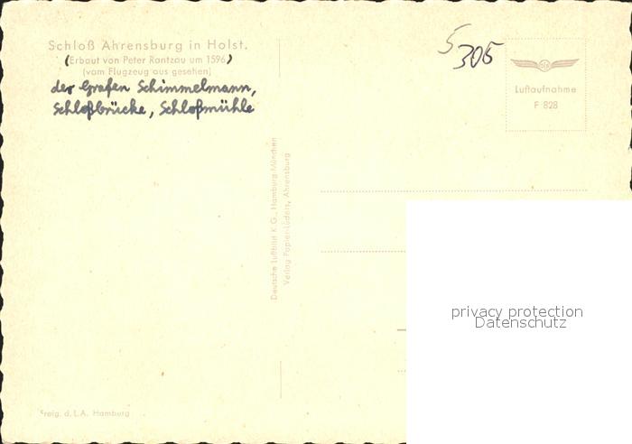 72156779 Ahrensburg Schloss Erbauer Peter Rantzau 16. Jhdt. Fliegeraufnahme postalisch nicht gelaufen Erhaltung siehe scans KatCode: 11110001062001