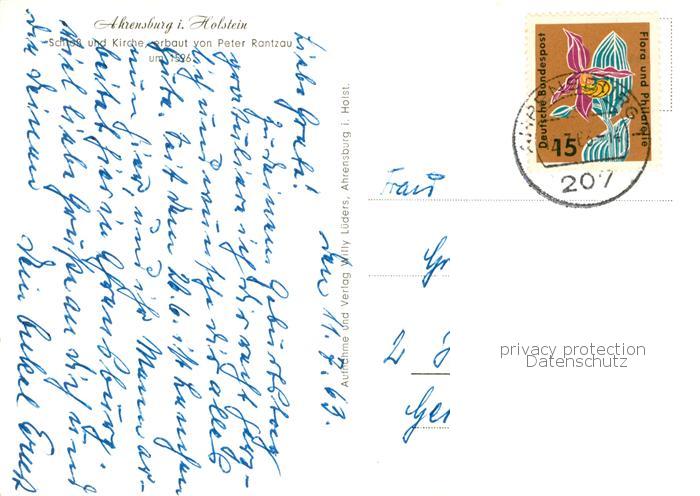 73858692 alte Postkarte Ahrensburg Schloss und Kirche Fliegeraufnahme postalisch gelaufen Erhaltung siehe scans [WerneD78] KatCode: 11110001062001