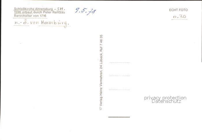 72452166 Ahrensburg Schlosskirche innen postalisch nicht gelaufen Erhaltung siehe scans KatCode: 11110001062001