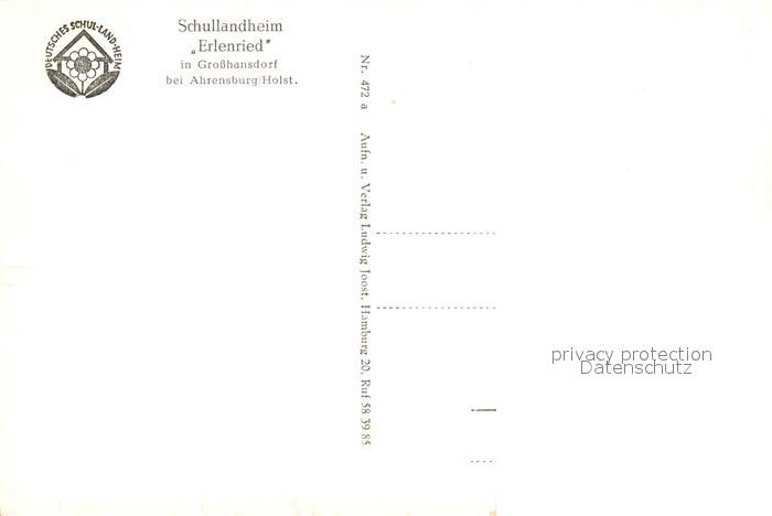 33045818 Ahrensburg Schullandheim Erlenried postalisch nicht gelaufen Erhaltung siehe scans [NatalD47] KatCode: 11110001062001