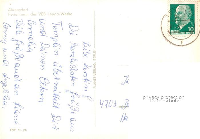 72925795 alte Postkarte Ahrensdorf Templin Ferienheim VEB Leuna-Werke postalisch gelaufen Erhaltung siehe scans [PaolaD17] KatCode: 11110012073572