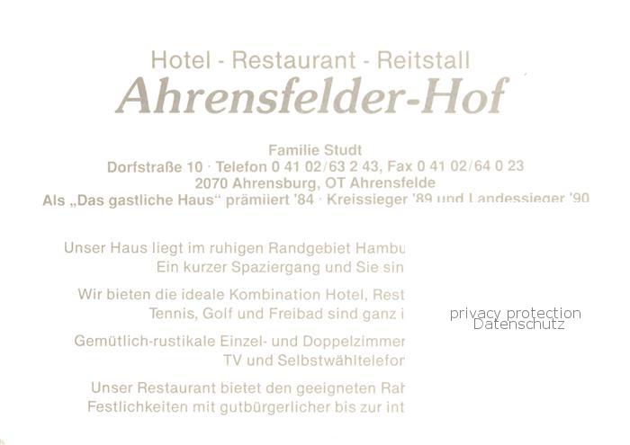 73849437 Ahrensfelde Ahrensburg Reitstall Studt Ahrensfelder Hof Gasthaus Pension Garten postalisch nicht gelaufen Werbekarte (keine Postkarte) Erhaltung siehe scans [FriedD77] Werbekarte (keine Postkarte) Frie Katcode 11110001062001