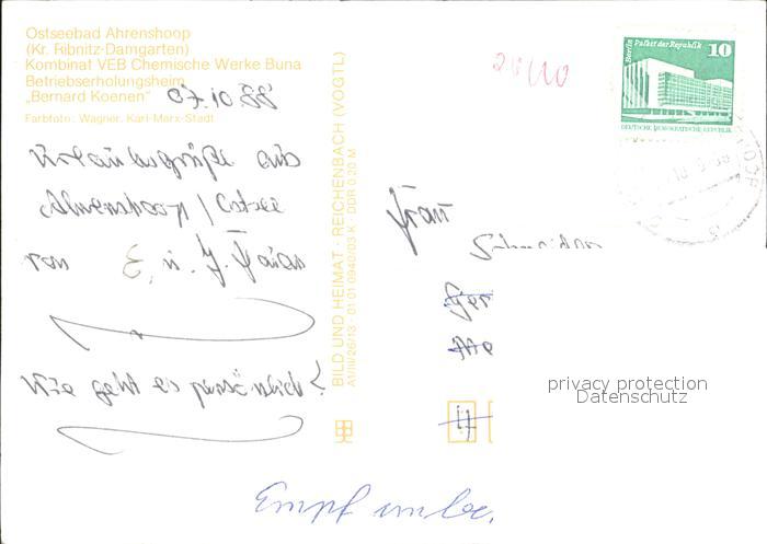 72136834 alte Postkarte Ahrenshoop Ostseebad Betriebserholungsheim Bernard Koenen postalisch gelaufen KatCode: 11110013057002