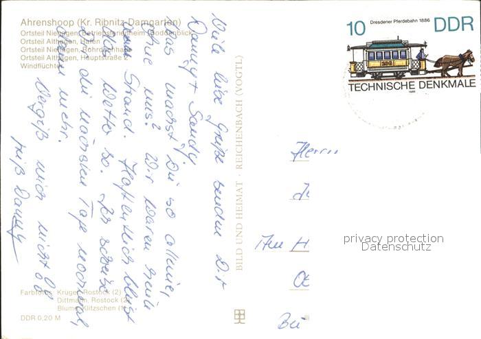 72315185 alte Postkarte Ahrenshoop Ostseebad Betriebsferienheim Boddenblick Hafen Rohrdachhaus Hauptstr Windfluechter postalisch gelaufen Erhaltung siehe scans KatCode: 11110013057002