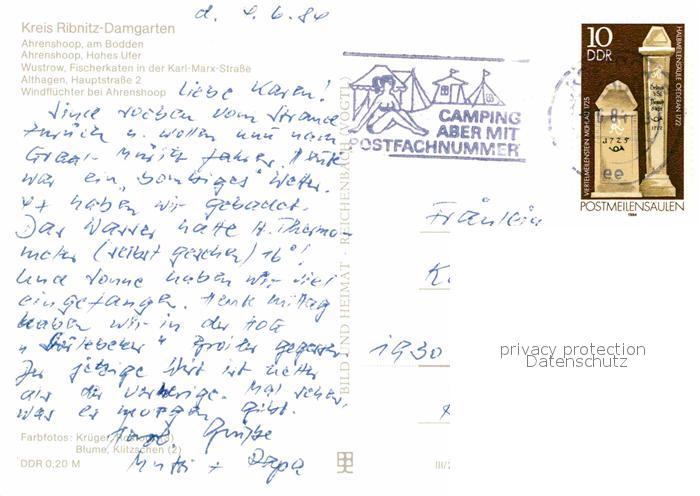 72898393 alte Postkarte Ahrenshoop Ostseebad Bodden Hohes Ufer Wustrow Althagen Windfluechter postalisch gelaufen Erhaltung siehe scans [AndreD76] KatCode: 11110013057002
