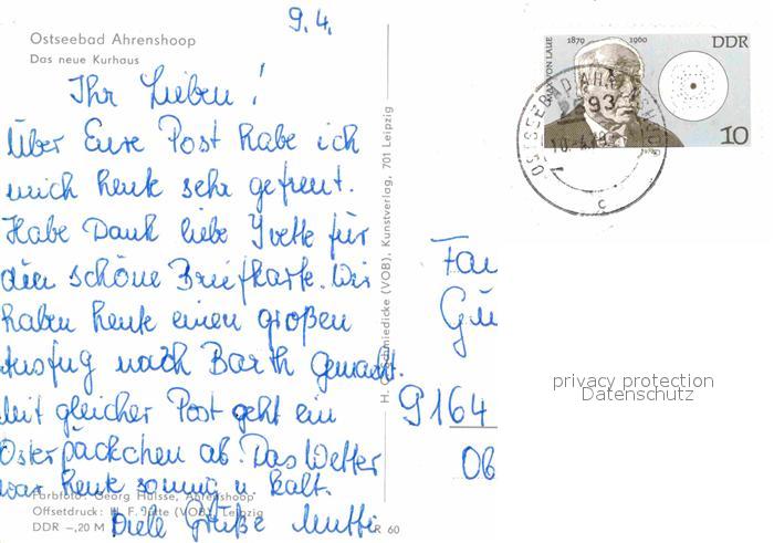 72654337 alte Postkarte Ahrenshoop Ostseebad Das neue Kurhaus postalisch gelaufen Erhaltung siehe scans [WerneD78] KatCode: 11110013057002