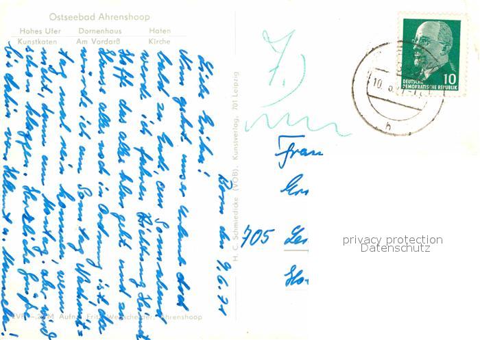 72751156 alte Postkarte Ahrenshoop Ostseebad Hohes Ufer Dornenhaus Hafen Kunstkaten Darss Kirche postalisch gelaufen Erhaltung siehe scans [FriedD77] KatCode: 11110013057002