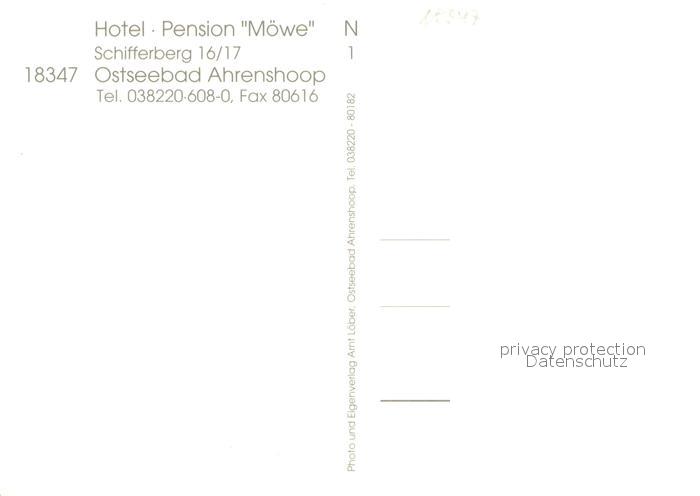 73651353 Ahrenshoop Ostseebad Hotel Moewe Pension postalisch nicht gelaufen Erhaltung siehe scans [WerneD78] KatCode: 11110013057002