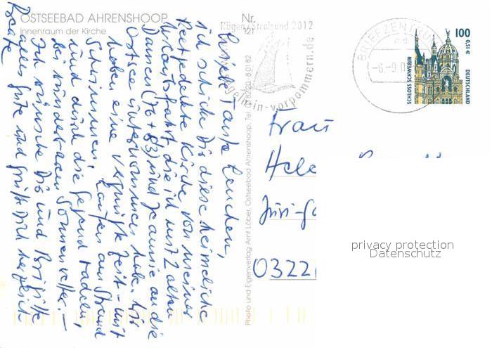 72696494 alte Postkarte Ahrenshoop Ostseebad Innenraum der Kirche postalisch gelaufen Erhaltung siehe scans [FriedD77] KatCode: 11110013057002