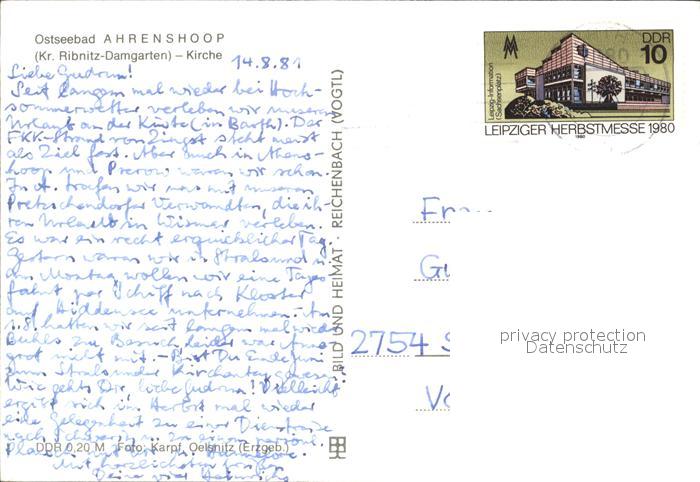 72114721 alte Postkarte Ahrenshoop Ostseebad Kirche postalisch gelaufen Erhaltung siehe scans KatCode: 11110013057002