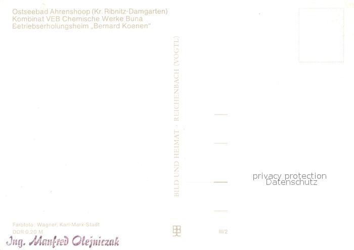 73085355 Ahrenshoop Ostseebad Kombinat VEB Chem Werke Buna Betriebserholungsheim Bernard Koenen postalisch nicht gelaufen Erhaltung siehe scans [FriedD77] KatCode: 11110013057002