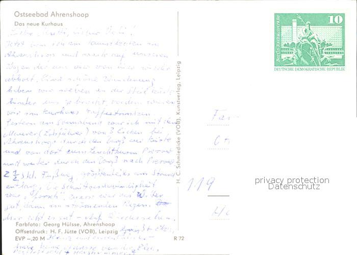 72383223 alte Postkarte Ahrenshoop Ostseebad Kurhaus postalisch gelaufen Erhaltung siehe scans KatCode: 11110013057002