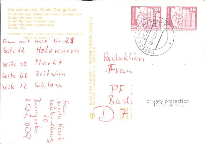 72461620 alte Postkarte Ahrenshoop Ostseebad Niehagen Ferienheim Boddenblick Rohrdachhaus Althafen Hafen postalisch gelaufen Erhaltung siehe scans KatCode: 11110013057002