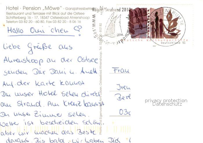 73734263 alte Postkarte Ahrenshoop Ostseebad Restaurant-Hotel Moewe postalisch gelaufen Erhaltung siehe scans [LiesaD40] KatCode: 11110013057002