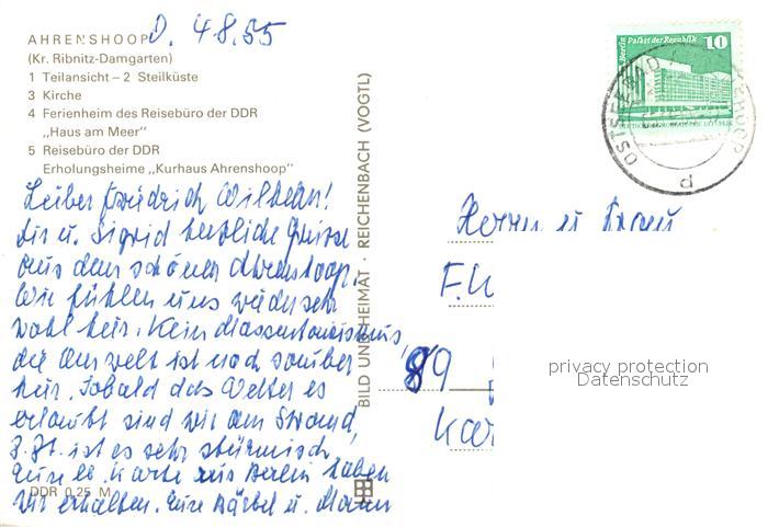 73099984 alte Postkarte Ahrenshoop Ostseebad Steilkueste Kirche Ferienheim Haus am Meer Reisebuero postalisch gelaufen Erhaltung siehe scans [KathaD81] KatCode: 11110013057002