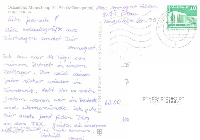 72629297 alte Postkarte Ahrenshoop Ostseebad Steilkueste Strand postalisch gelaufen Erhaltung siehe scans [WerneD78] KatCode: 11110013057002