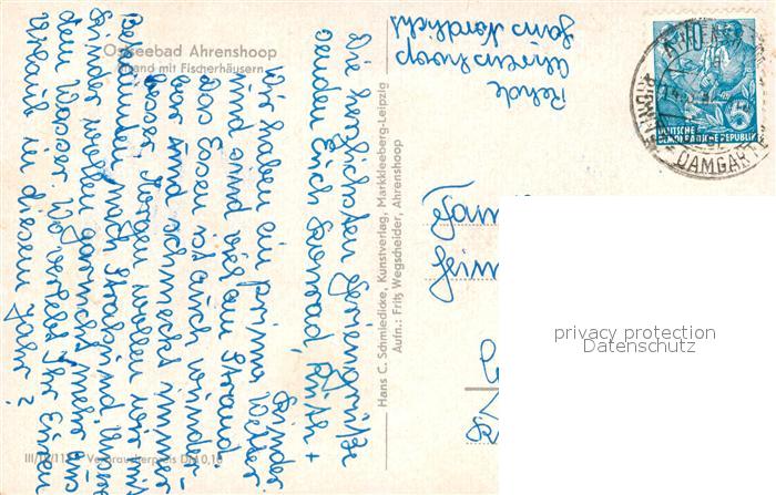 73293110 alte Postkarte Ahrenshoop Ostseebad Strand mit Fischerhaeusern postalisch gelaufen Erhaltung siehe scans [WerneD78] KatCode: 11110013057002