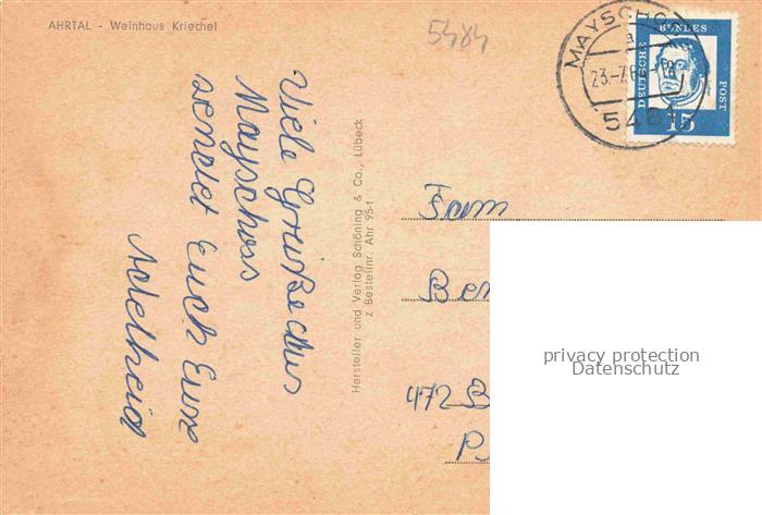74054332 alte Postkarte Ahrtal Bad Neuenahr-Ahrweiler Weinhaus Kriechel postalisch gelaufen Erhaltung siehe scans [WerneD78] KatCode: 11110007131007