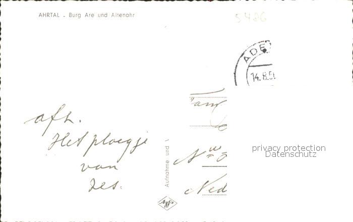 71930159 alte Postkarte Ahrtal Burg Are postalisch gelaufen KatCode: 11110007131007