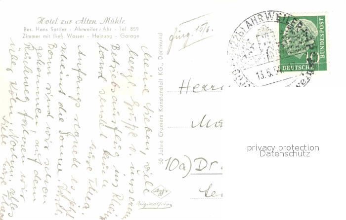 72639806 alte Postkarte Ahrweiler Ahr Ahrtor Stadtmauer Kloster Kalvarienberg Hotel Alten Muehle postalisch gelaufen Erhaltung siehe scans [KathaD79] KatCode: 11110007131007