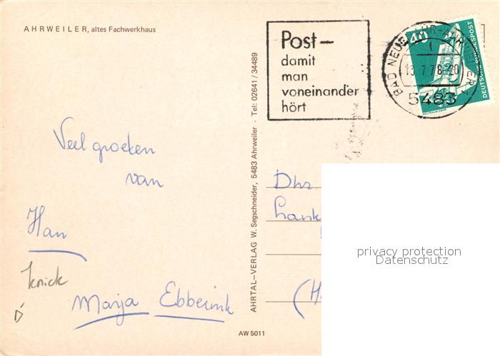 72928665 alte Postkarte Ahrweiler Ahr Altes Fachwerkhaus postalisch gelaufen Erhaltung siehe scans [WerneD78] KatCode: 11110007131007