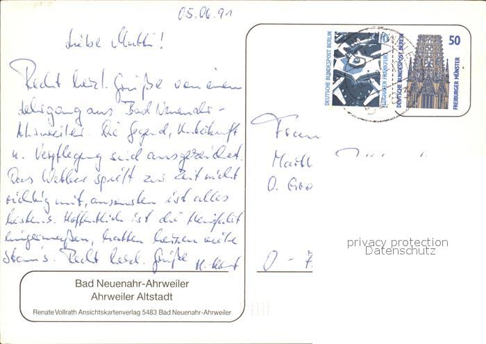 72528434 alte Postkarte Ahrweiler Ahr Altstadt Fachwerkhaeuser Fussgaengerzone Bachlauf Springbrunnen postalisch gelaufen Erhaltung siehe scans KatCode: 11110007131007