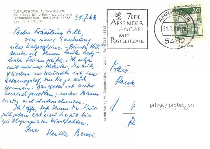72867503 alte Postkarte Ahrweiler Ahr Ausflugslokal Altenwegshof postalisch gelaufen Erhaltung siehe scans [LiesaD40] KatCode: 11110007131007