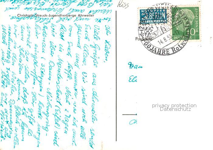 73098245 alte Postkarte Ahrweiler Ahr Christoph Strauck Jugendherberge postalisch gelaufen Erhaltung siehe scans [LiesaD40] KatCode: 11110007131007