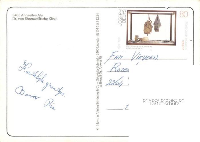 72519853 alte Postkarte Ahrweiler Ahr Ehrenwallische Klinik postalisch gelaufen Erhaltung siehe scans KatCode: 11110007131007