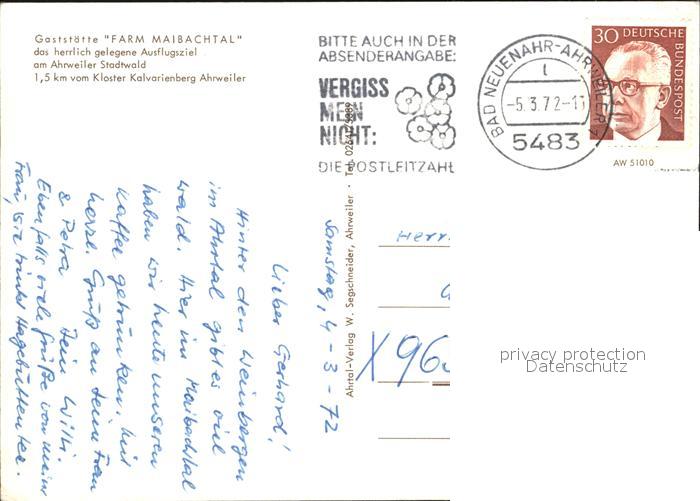 72455093 alte Postkarte Ahrweiler Ahr Gaststaette Farm Maibachtal postalisch gelaufen Erhaltung siehe scans KatCode: 11110007131007