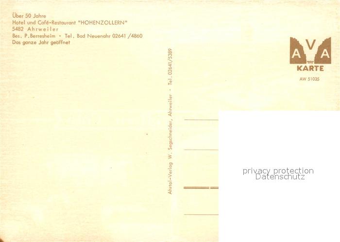 73086247 Ahrweiler Ahr Hotel Cafe Restaurant Hohenzollern postalisch nicht gelaufen Erhaltung siehe scans [KathaD81] KatCode: 11110007131007