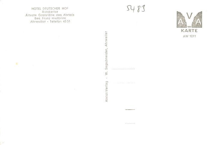 73875863 Ahrweiler Ahr Hotel Deutscher Hof Ratskeller Restaurant aelteste Gaststaette des Ahrtals Fachwerkhaus postalisch nicht gelaufen Erhaltung siehe scans [FriedD77] KatCode: 11110007131007