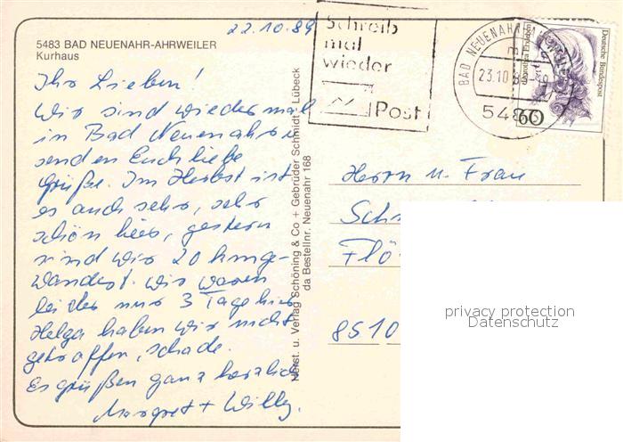 72777356 alte Postkarte Ahrweiler Ahr Kurhaus postalisch gelaufen Erhaltung siehe scans [KathaD81] KatCode: 11110007131007