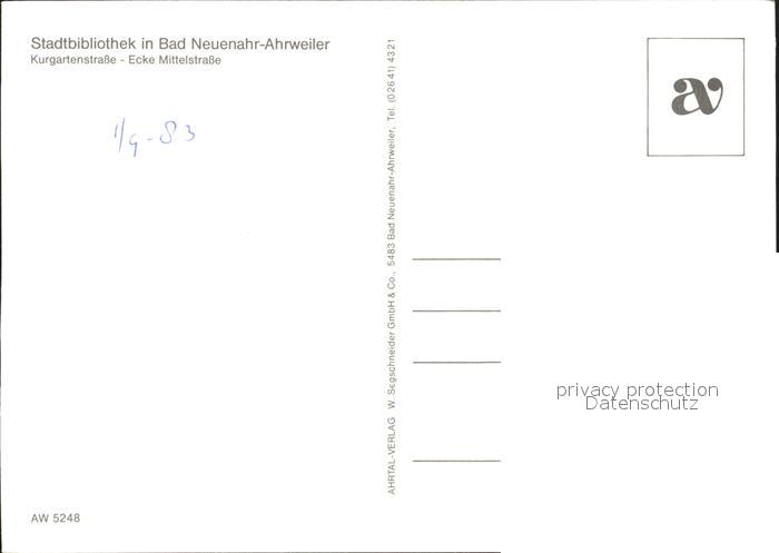 72306190 Ahrweiler Ahr Stadtbibliothek Kurgartenstrasse postalisch nicht gelaufen Erhaltung siehe scans KatCode: 11110007131007