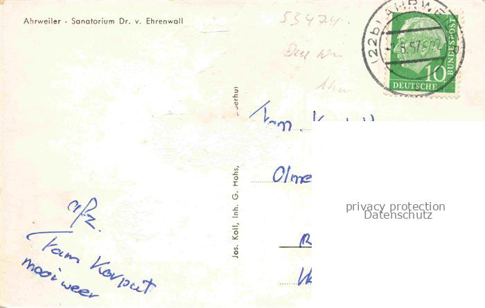 74022024 alte Postkarte Ahrweiler BAD NEUENAHR-AHRWEILER Sanatorium Dr v Ehrenwall Fliegeraufnahme postalisch gelaufen Erhaltung siehe scans [WerneD78] KatCode: 11110007131007