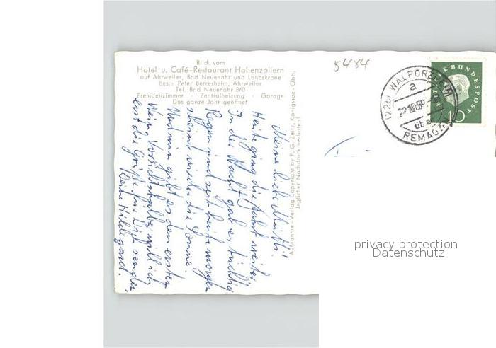 41619801 alte Postkarte Ahrweiler Grafschaft Blick vom Hotel und Cafe Hohenzollern postalisch gelaufen Erhaltung siehe scans KatCode: 11110007131090