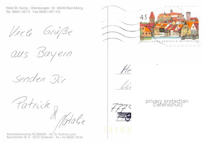 72846851 Aibling Bad Hotel St Georg postalisch nicht gelaufen Erhaltung siehe scans [KathaD81] KatCode: 11110009187117