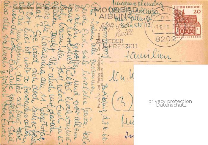 72841565 alte Postkarte Aibling Bad Moorheilbad Muehlbach postalisch gelaufen Erhaltung siehe scans [LiesaD40] KatCode: 11110009187117