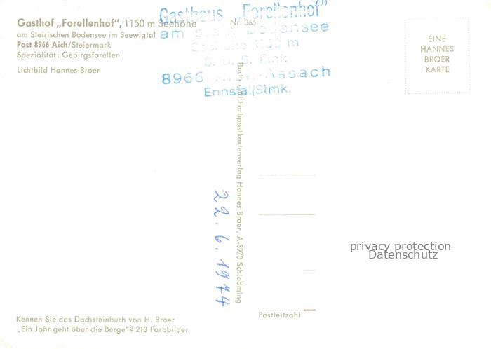 74029358 Aich Ennstal Aich-Assach Steiermark AT Gasthof Forellenhof am Steirischen Bodensee im Seewigtal Ennstaler Alpen postalisch nicht gelaufen Erhaltung siehe scans [FriedD77] KatCode: 11390222061250