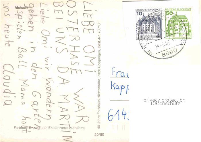 72751115 alte Postkarte Aichach Innenstadt Fussgaengerzone Strassencafe Giebelhaus postalisch gelaufen Erhaltung siehe scans [FriedD77] KatCode: 11110009771113