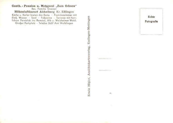 73887051 Aichelberg Goeppingen Gasthaus Pension Zum Ochsen Gatraeume postalisch nicht gelaufen Erhaltung siehe scans [FriedD77] KatCode: 11110008117002