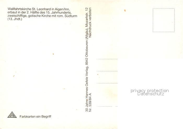 73270815 Aigen Inn Wallfahrtskirche Sankt Leonhard postalisch nicht gelaufen Erhaltung siehe scans [KathaD81] KatCode: 11110009275116