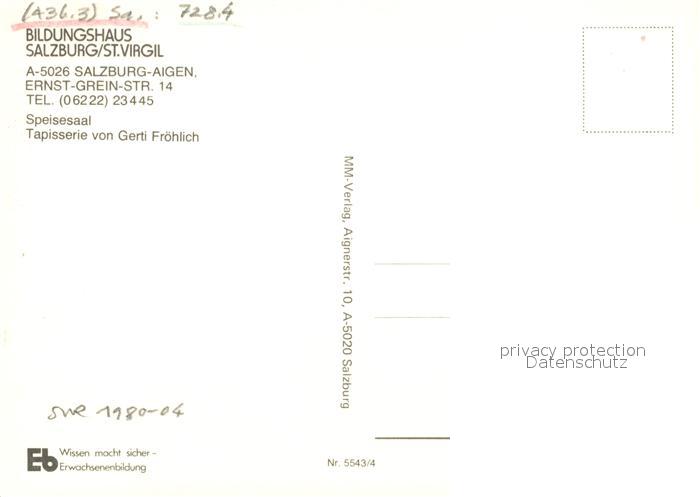 73592394 Aigen Salzburg Bildungshaus Speisesaal Tapisserie postalisch nicht gelaufen Erhaltung siehe scans [FriedD77] KatCode: 11390323050101
