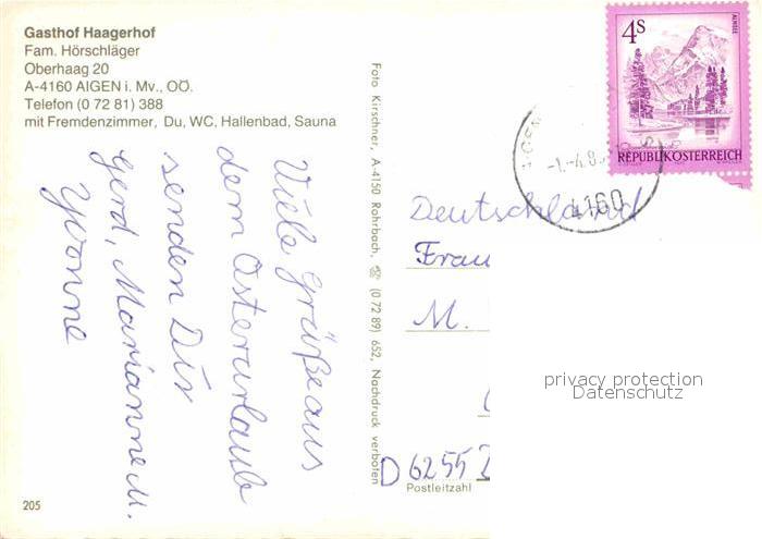 72865621 alte Postkarte Aigen Wels Gasthof Haagerhof Gastraum Kaminzimmer postalisch gelaufen Erhaltung siehe scans [WerneD78] KatCode: 11390