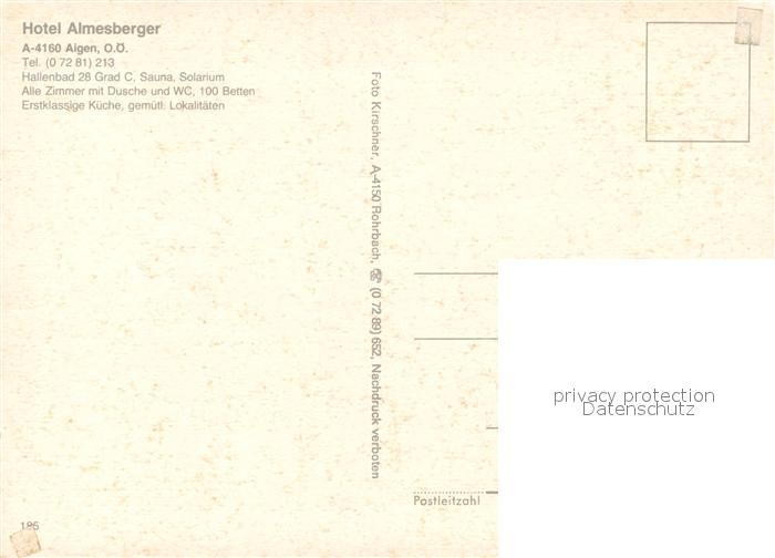 73076121 Aigen Wels Hotel Almesberger Schwimmbad postalisch nicht gelaufen Erhaltung siehe scans [KathaD81] KatCode: 11390