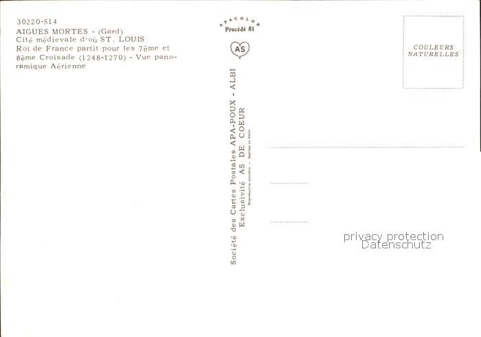 12490584 Aigues-Mortes Gard Cite medievale d ou St Louis Vue panoramique aerienne postalisch nicht gelaufen Erhaltung siehe scans KatCode: 11170030230003