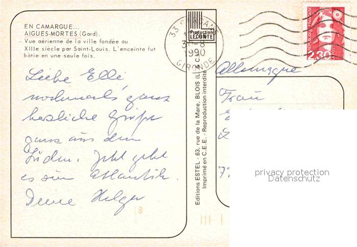 12650777 carte postale Aigues-Mortes Gard Fliegeraufnahme postalisch gelaufen Erhaltung siehe scans [WerneD78] KatCode: 11170030230003