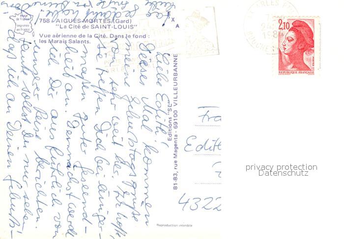 13516912 carte postale Aigues-Mortes Gard Fliegeraufnahme La Cite de Saint Louis postalisch gelaufen Erhaltung siehe scans [KathaD81] KatCode: 11170030230003