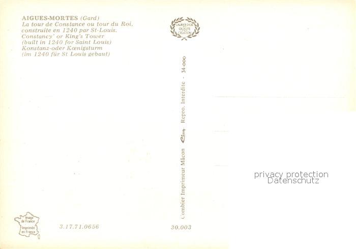 13545960 Aigues-Mortes Gard La tour de Constance ou tour du Roi postalisch nicht gelaufen Erhaltung siehe scans [WerneD78] KatCode: 11170030230003